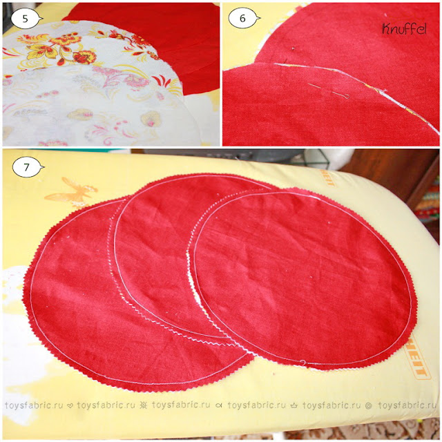 попарно круги лицевыми сторонами друг к другу и прошить по окружности, замкнув